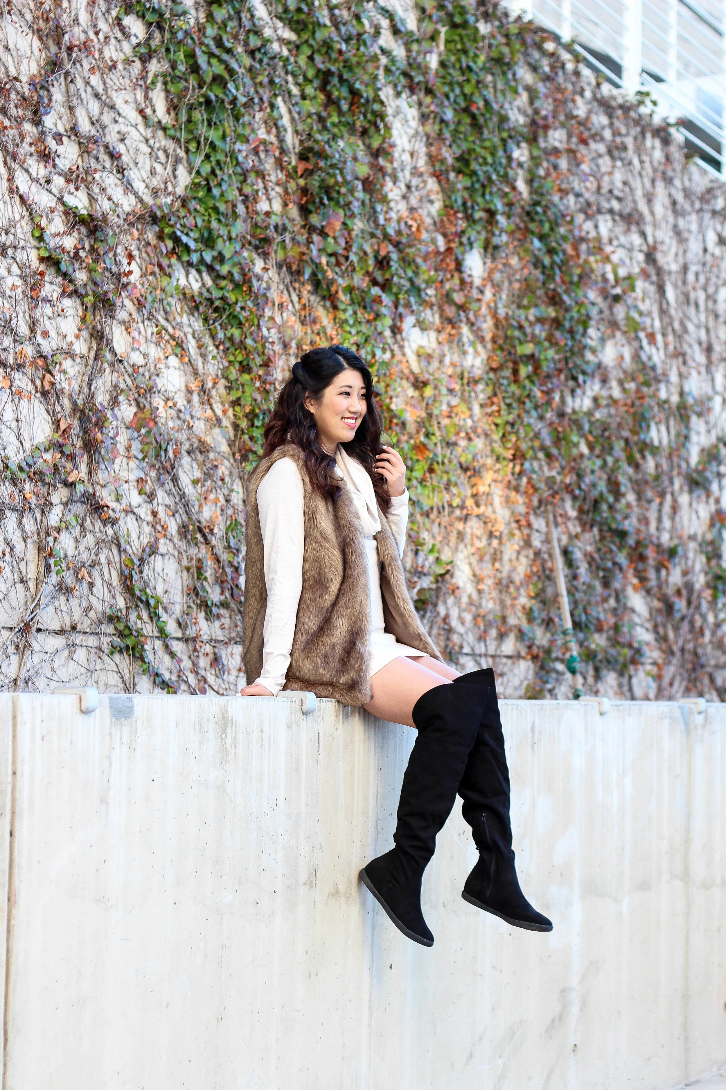 Yay for faux fur! The faux fur trend definitely grew on me, as I never really liked the idea of wearing faux fur to begin with. I borrowed this faux fur vest by Charlotte Russe from my good friend, Thy, for our fashion shoot. Honestly, if Charlotte Russe was still selling this piece, I would buy it in a jiffy! It was extremely soft and lightweight and served as the perfect layer to add to a casual fall look. Similarly to my trenchcoat story, I unfortunately haven't found a good faux fur vest to purchase yet. However, Thy told me that her faux fur vest was anywhere from $30-$40, which is not a bad price for something that adds texture to your entire look.
