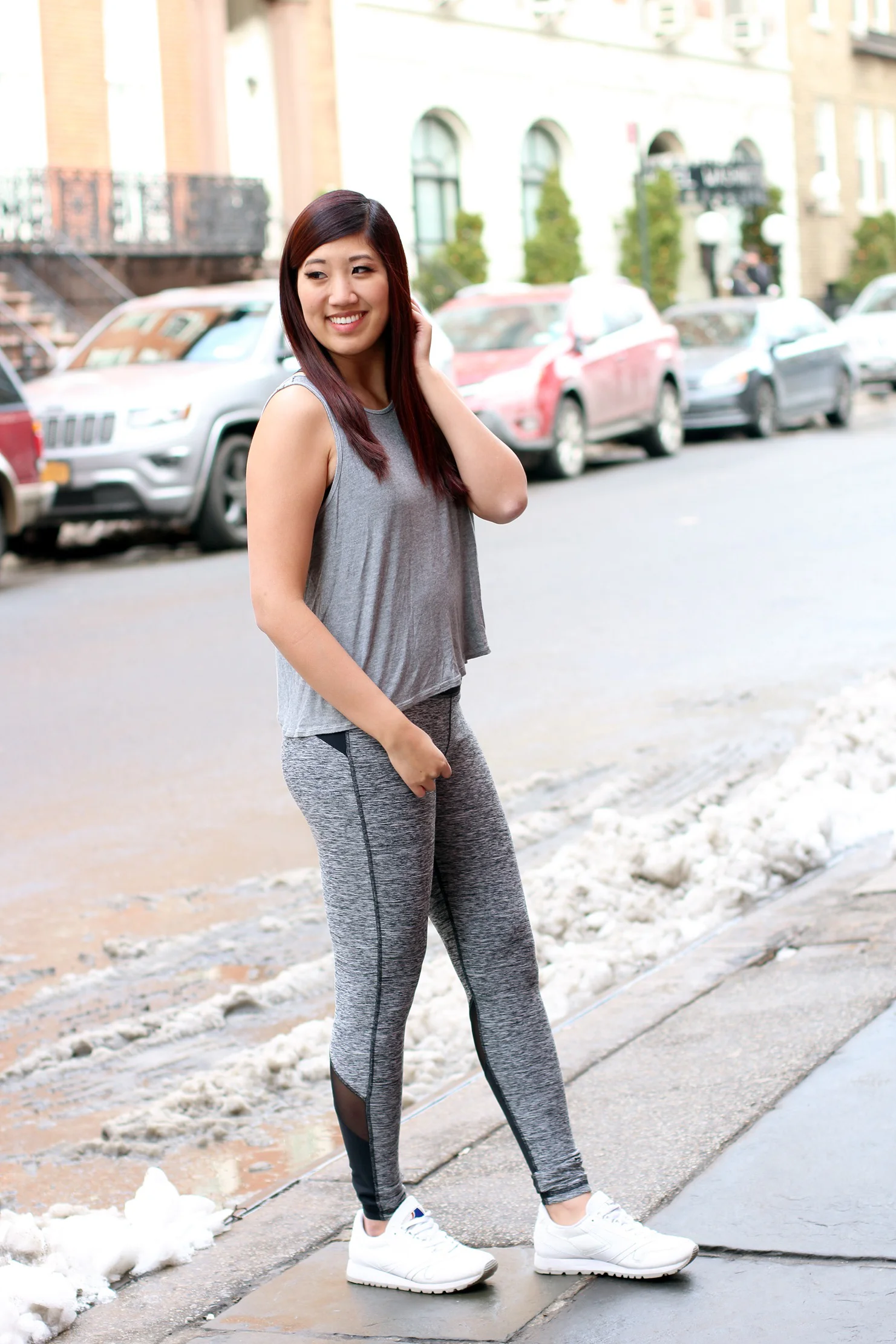 This sophisticated pair of Mesh Tech Leggings serves as one of the best workout pants I’ve owned in years when it comes to both style and comfort. Given that I’ve danced hip hop competitively for over four years, please take this statement with more than just a grain of salt. These leggings hug my body in just the right places and provide that extra layer of warmth I need whenever I am jogging around the neighborhood or walking the dogs on a chilly day. Also, the mixture of mesh and nylon textures and the black and grey colorblock details really makes this a flattering piece to wear for any workout enthusiast. However, I will mention that these leggings do come up a bit higher than I typically prefer, as the waistband lies a bit over my bellybutton (whereas the waistband lies below the bellybutton of the models on the website). Other than that feature, I absolutely adore the stretch that these Mesh Tech Leggings offer for both low and high impact activity.