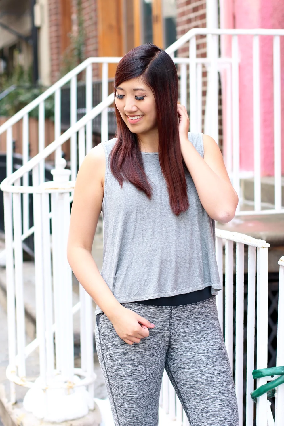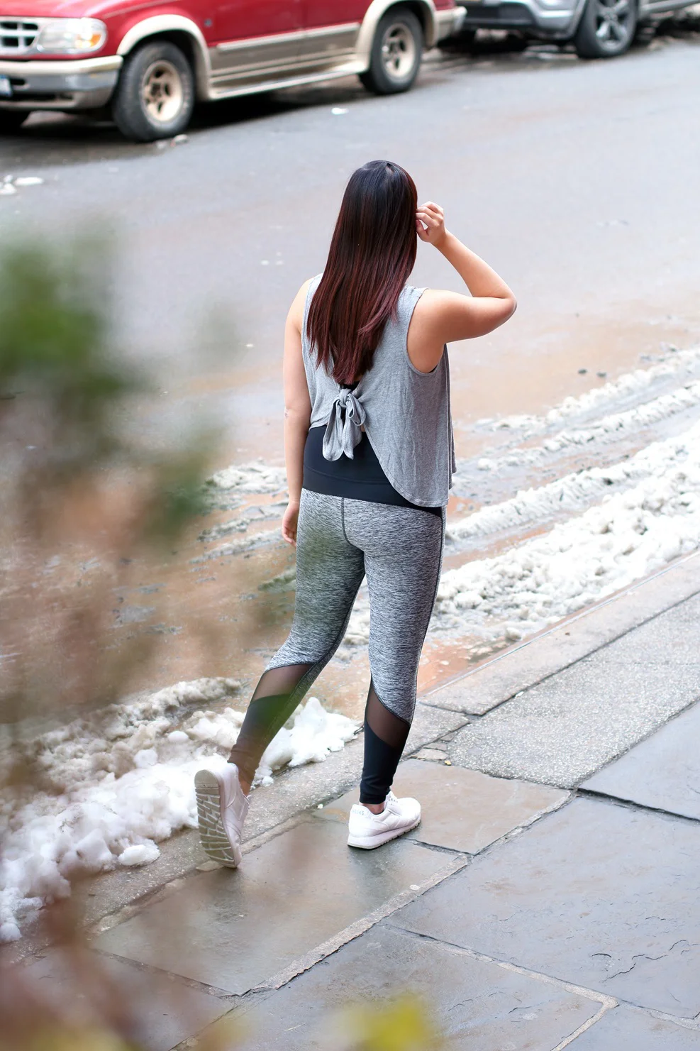 As for workout tops, I generally prefer loose tanks over classic tees. Call me shameless, but I’m not afraid to admit that I sweat a lot when I work out – this just means I’m putting in the work! With tanks, I feel that my skin is able to breathe better and that’s why I’ve selected this adorable Grey Tie Tank. I am both a huge fan of classic workout tanks and backless tanks, but it all comes down to how you style it. With backless tanks like this Grey Tie Tank, I feel that it adds more fun to your workout outfit since you can dress it up with different intricate sports bra designs. For this look, I added a Black Sports Bra by 7 Til’ Midnight that I received from Lisa Linh’s Shop N’ Sip event. Random plug-in, but did you know that this sports bra can hold your cellphone?! Isn’t it crazy just how creative apparel designs can be nowadays?! If you want to rock minimalistic vibes, this entire outfit is the workout look for you. Or, pair the grey tie tank with a colorful pair of floral leggings or brightly colored shoes if you’re not afraid to radiate color and pattern at your next workout session!