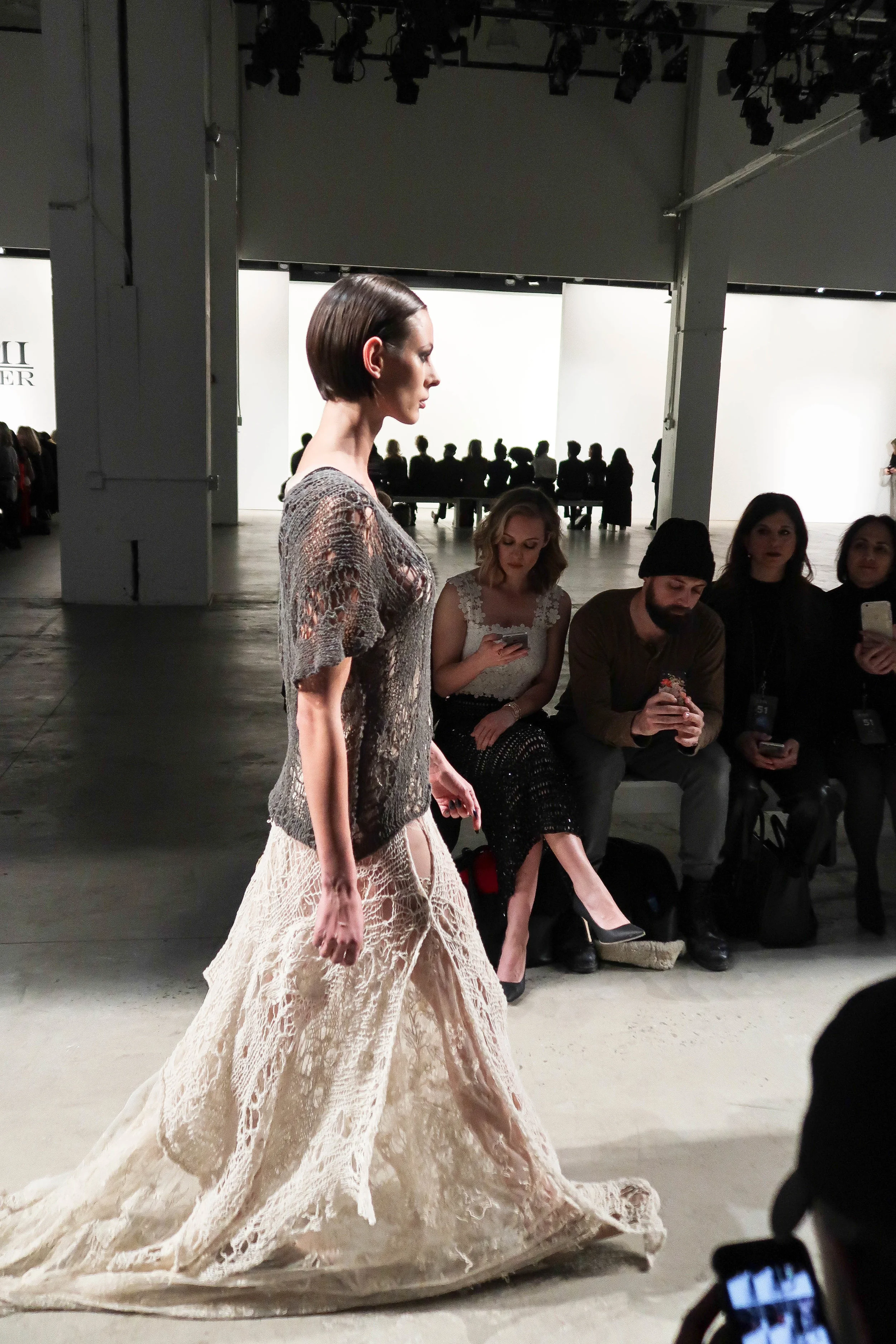 Cool, calm, and collected music began to play for a few seconds before the spotlights dawned on to a huge “Mimi Prober” sign. As soon as the first model started walking down the runway, I instantly fell in love with Mimi Prober’s line. Throughout the entire show, I gushed silently to myself, in awe of all of the beautiful pieces being showcased that night. Mimi Prober’s Fall and Winter 2017 collection was truly a sight to behold, with a strong emphasis on layering different lace textures together all the while incorporating more minimalistic colors into their pieces. Radiating both bohemian and romantic vibes, my eyes felt glued to the runway and how each model’s outfit swayed to the beat of the music. Before I knew it, all of the models were adjacently lined up in an organized fashion to signify the end of the show. The applause from the crowd roared, the lights grew brighter, and everybody began to shuffle out of their seats and towards the exit signs.
