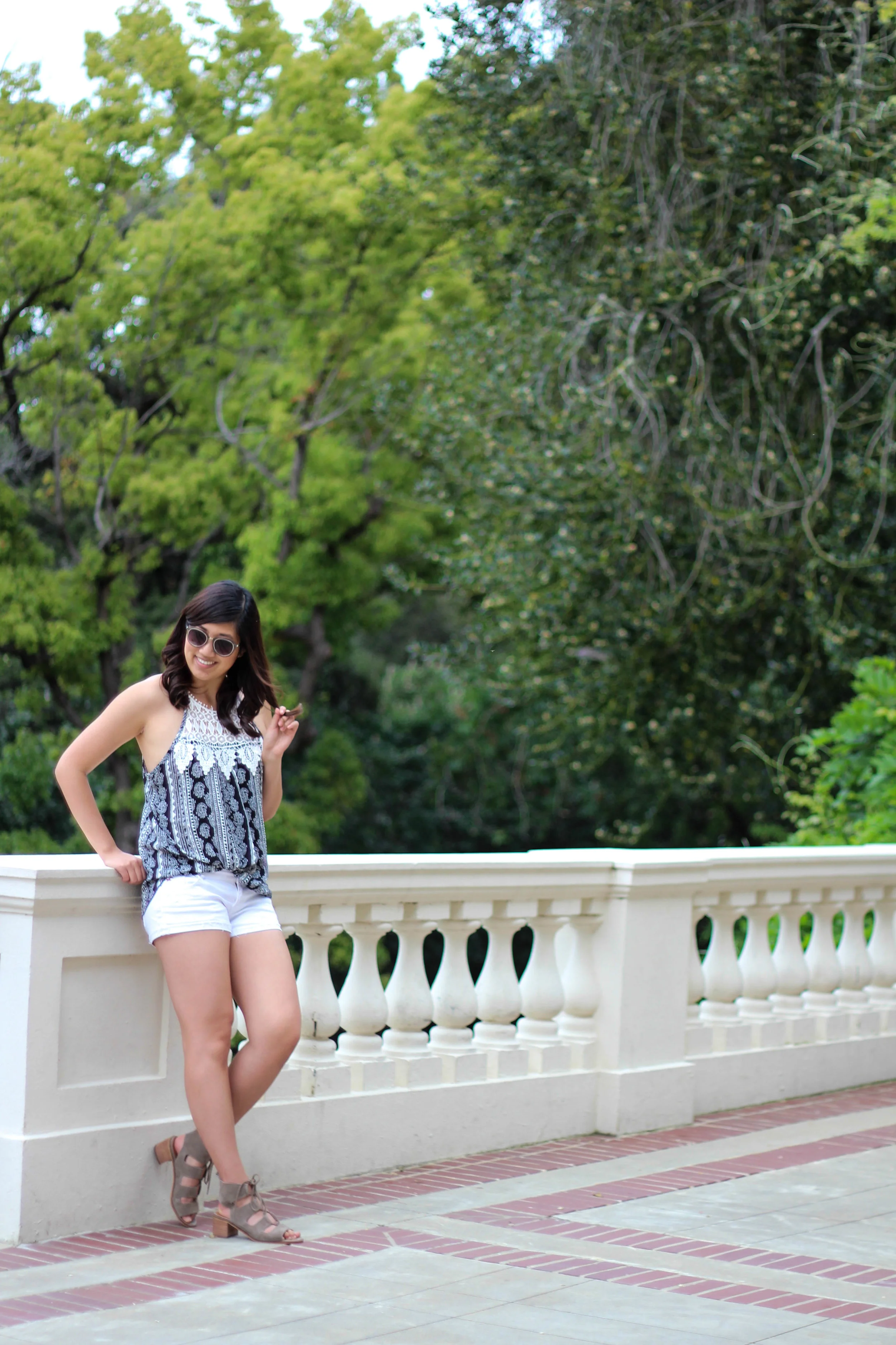 Sunglasses: AMI Clubwear | Top: Papaya Clothing | Shorts: Hollister Co. | Chunky Heels: Steve Madden